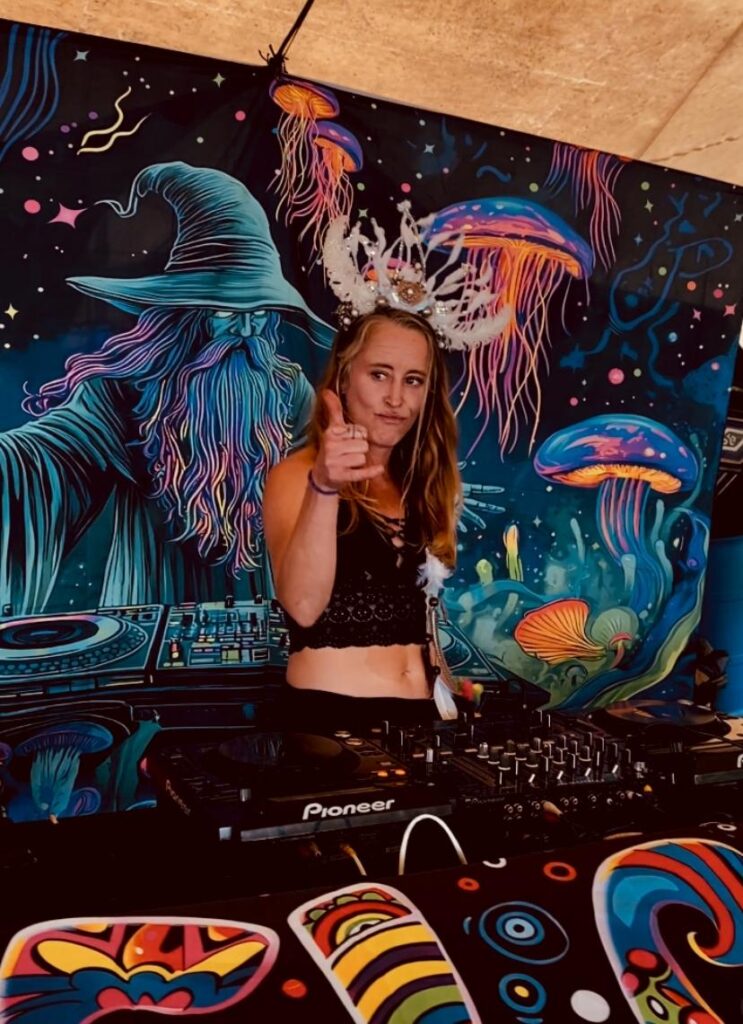 DJLYRA, is Samantha Cartwright, a dynamic live-singing DJ who blends electronic music with live vocals across genres like Afrohouse, Desert Techno, reggae, and orchestral techno-trance.